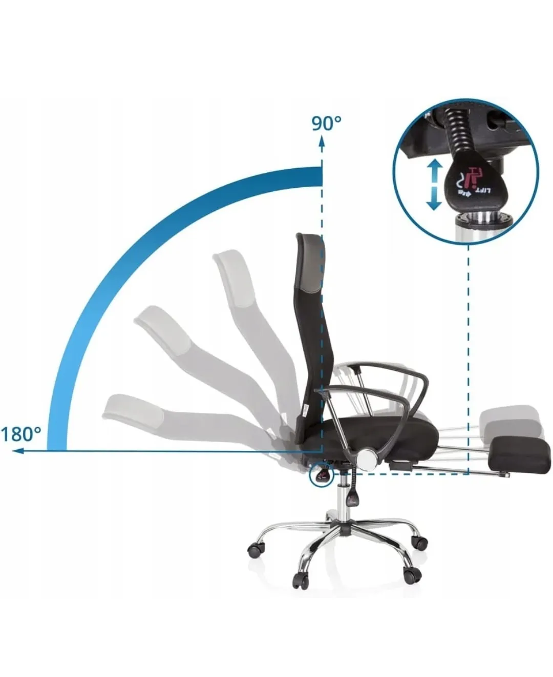 Strefa relaksu 2w1: Dzięki funkcji odchylania oparcia w fotelu do 135° i wysuwanemu podnóżkowi, możesz zmienić swoje stanowisko pracy w komfortową leżankę w kilka sekund.