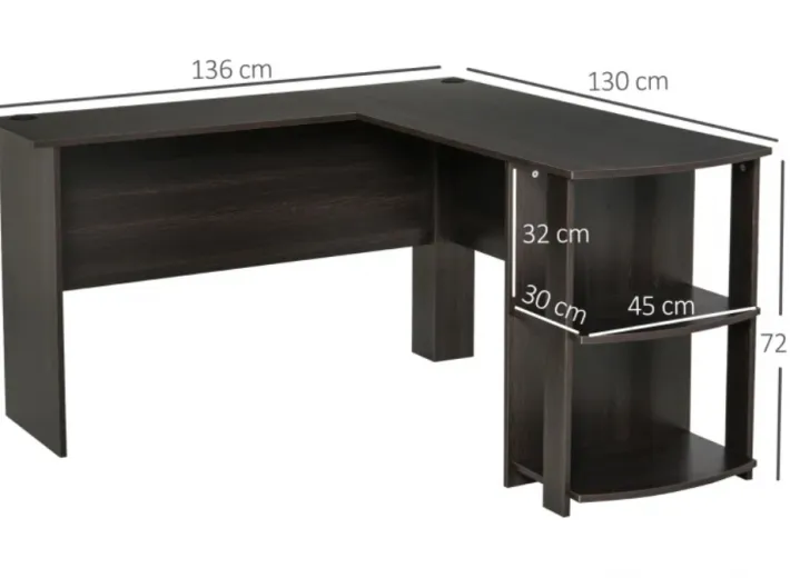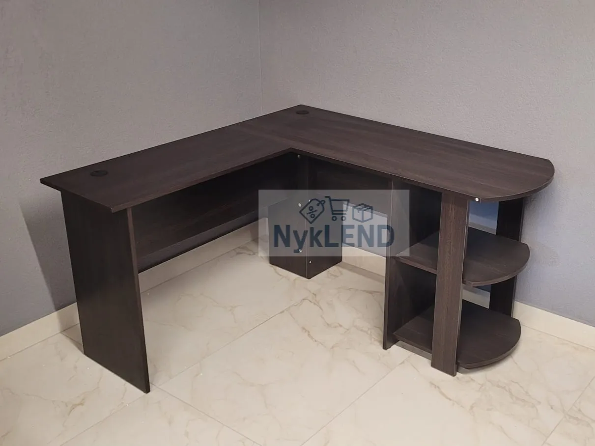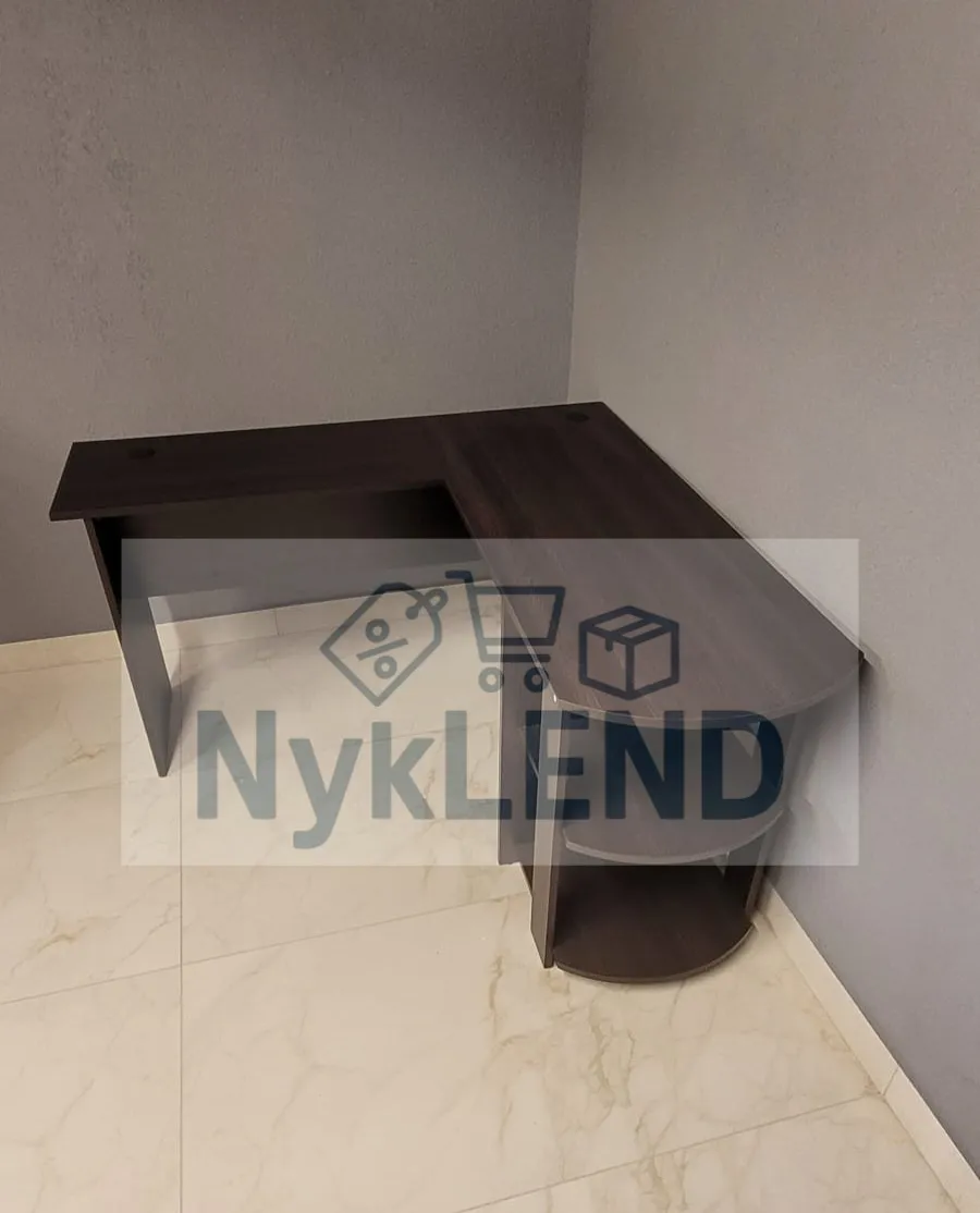 Biurko narożne  w kształcie litery L pozwala na optymalne zagospodarowanie kąta pokoju, oferując szeroki blat i zintegrowane półki na dokumenty.