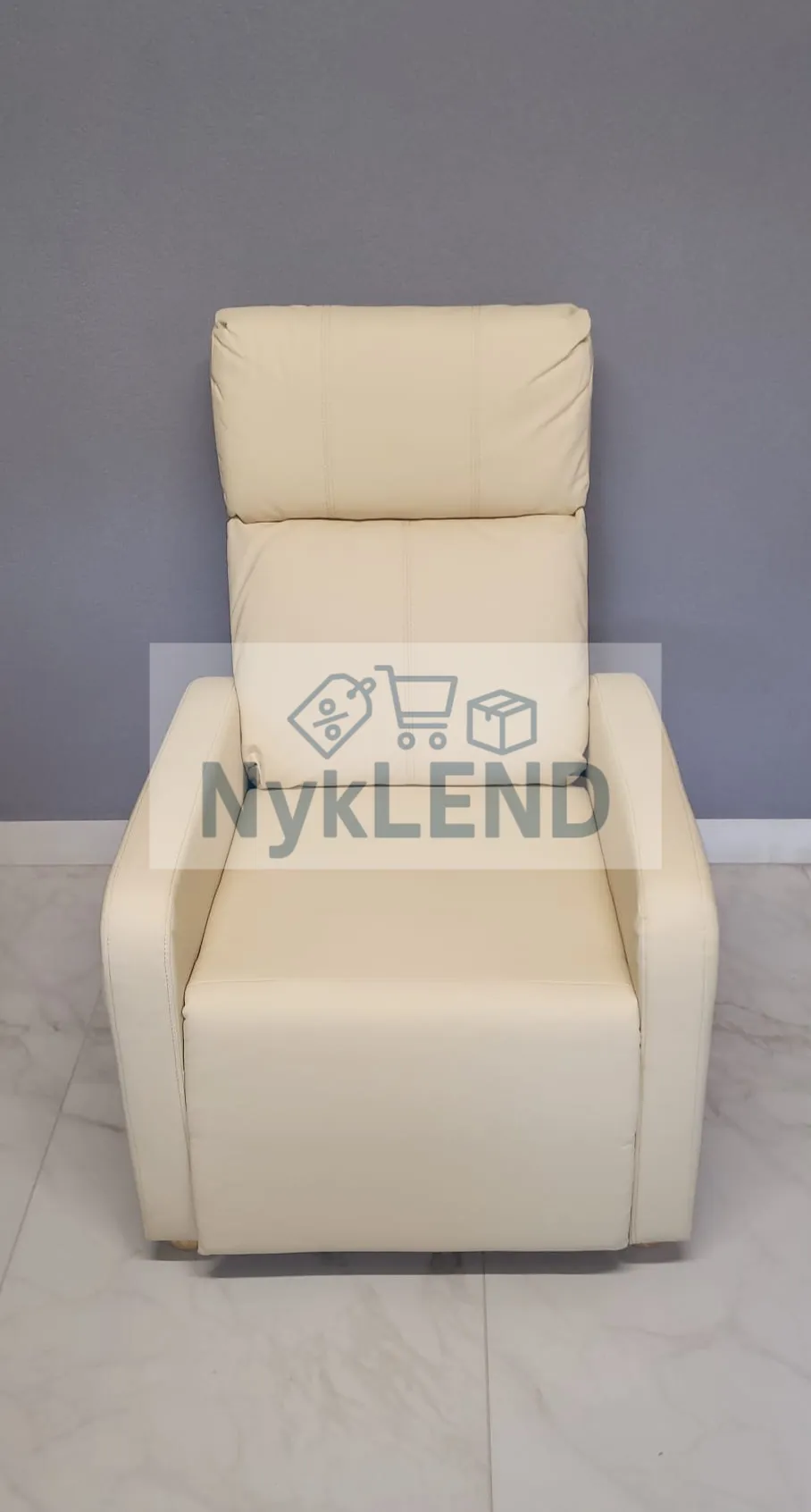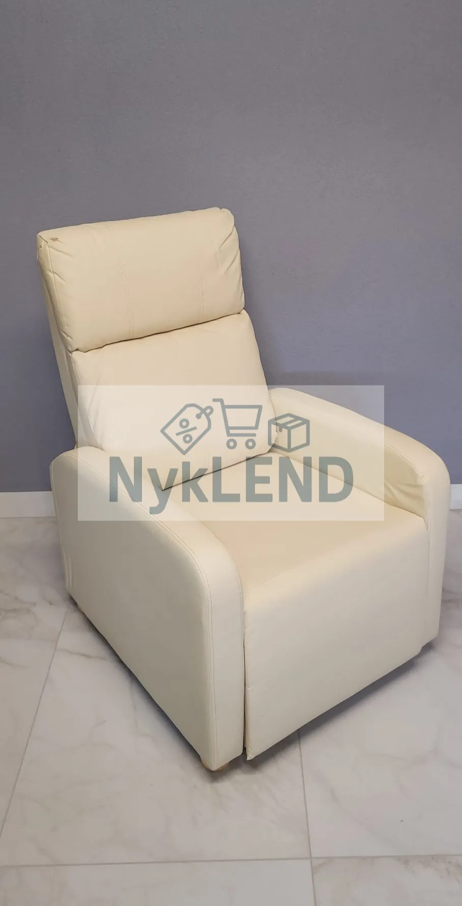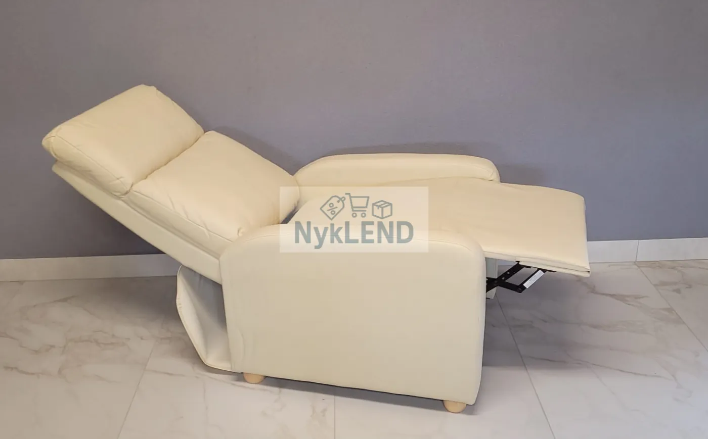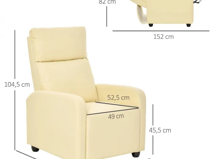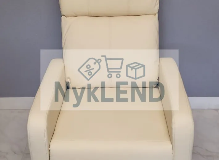 Zanurz się w wyjątkowym komforcie i odprężeniu dzięki eleganckiemu, rozkładanemu fotelowi wykonanemu z wysokiej jakości ekoskóry w kolorze kremowym.
