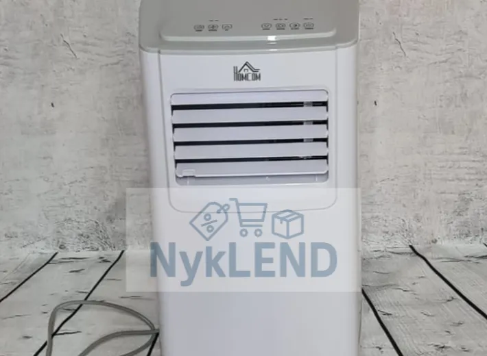 Mobilny klimatyzator o mocy chłodniczej 5000 BTU, wyposażony w 4 tryby pracy, funkcję osuszania oraz inteligentne sterowanie pilotem i timerem 24h.