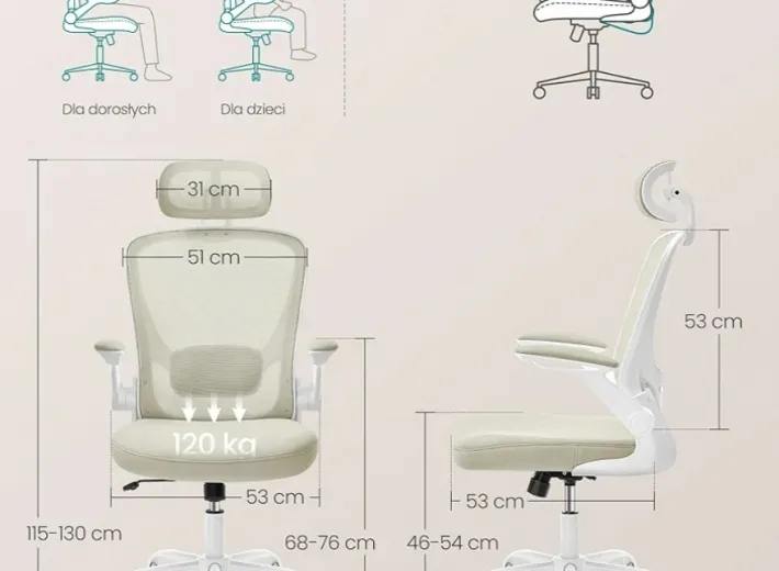Oszczędność miejsca: Podnoszone do góry podłokietniki pozwalają na głębokie wsunięcie fotela pod biurko – idealne rozwiązanie do mniejszych pokoi.