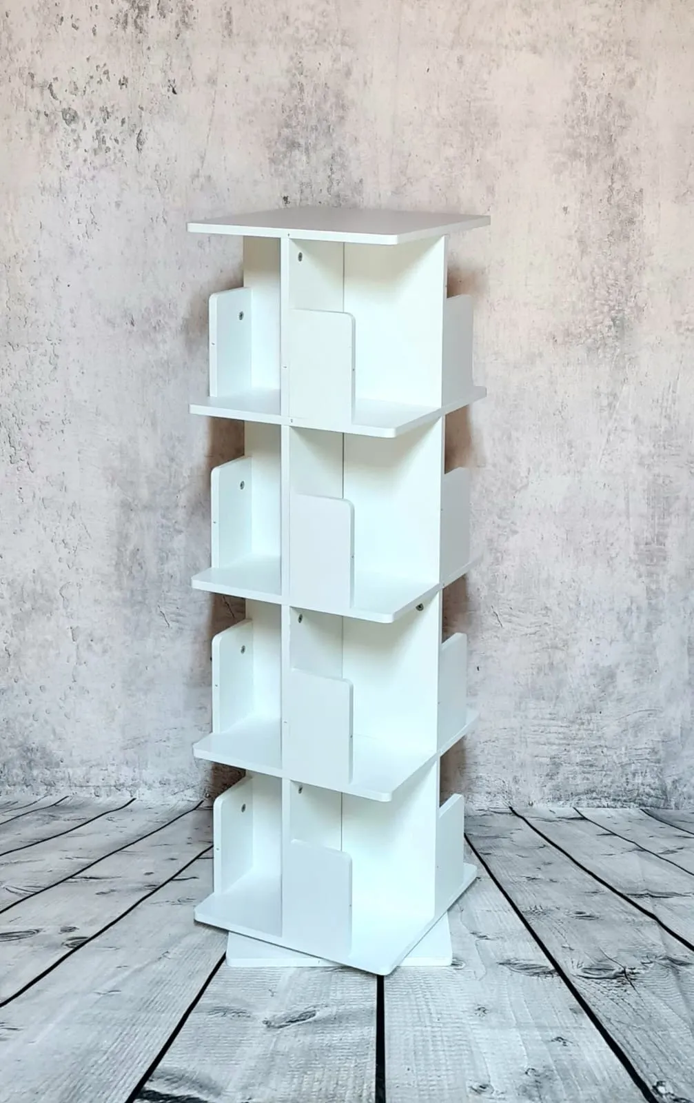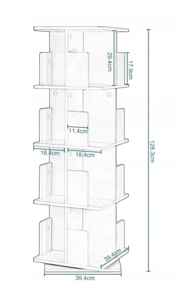 Obrotowy regał na książki: dzięki jednoczęściowej, obrotowej konstrukcji regał książki moż swobodnie obracać o 360 w lewo lub w prawo. Dzięki ściankom bocznym zapobiega wypadaniu przedmiotów podczas obracania.