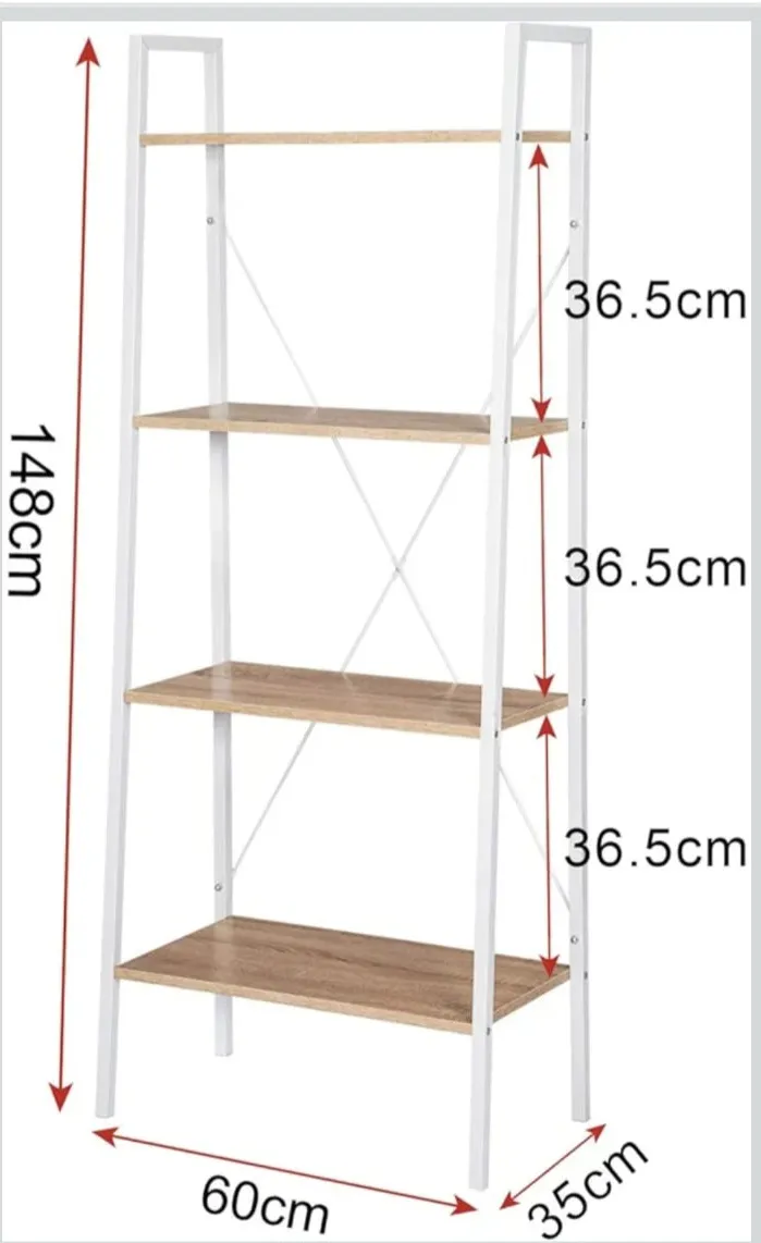 Stwórz uporządkowaną i nowoczesną przestrzeń dzięki solidnemu, 4-poziomowemu regałowi, który idealnie sprawdzi się w salonie, sypialni, a nawet w domowym biurze.