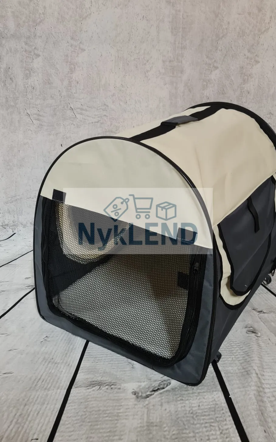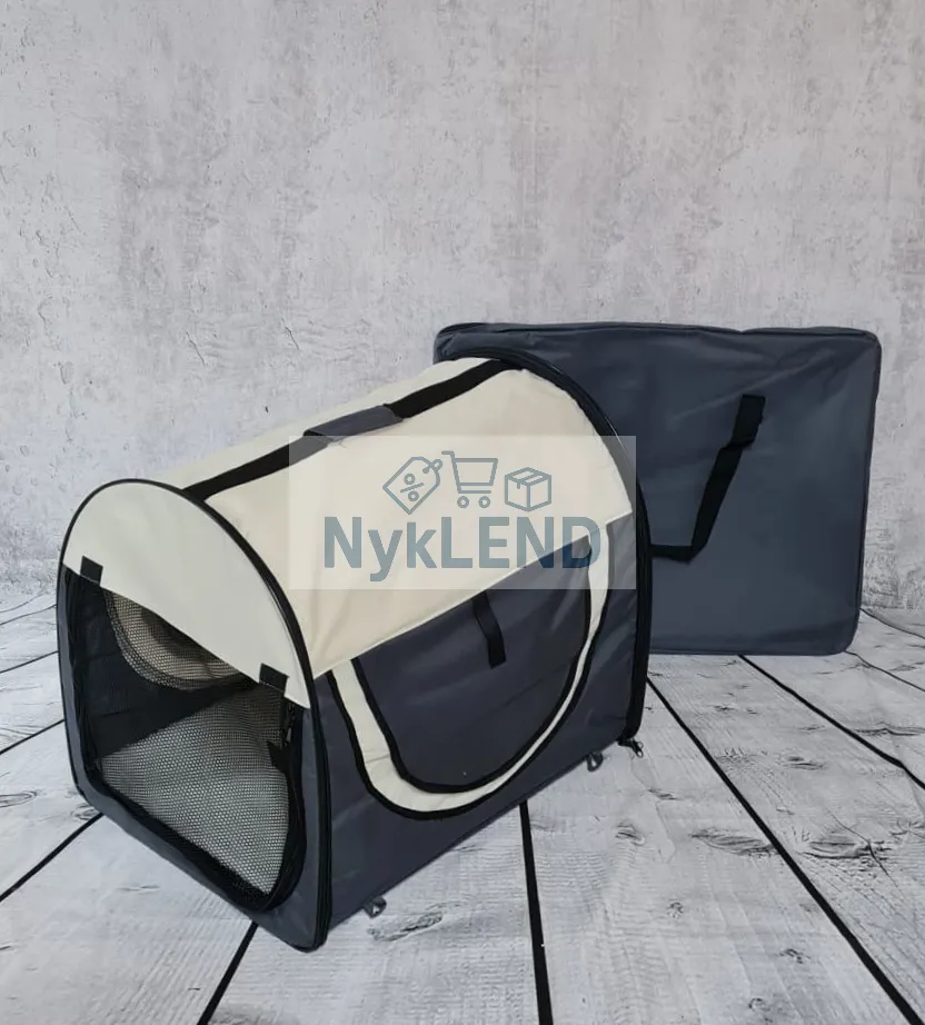 Lekki, tekstylny transporter z funkcją składania, zapewniający doskonałą wentylację i komfortowy transport dla psów lub kotów.